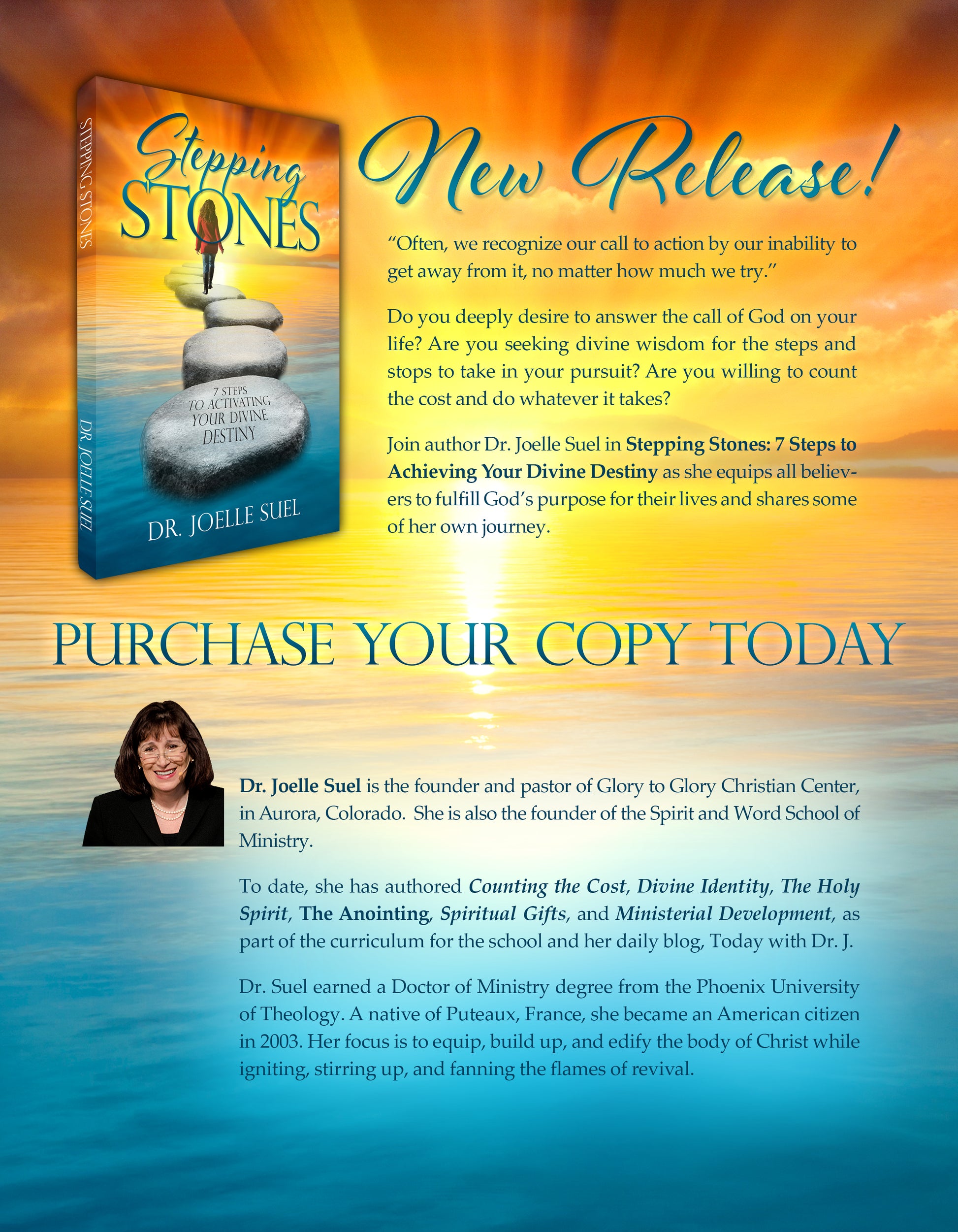 Join author Dr. Joelle Suel in Stepping Stones: 7 Steps to Achieving Your Divine Destiny as she equips all believers to fulfill God’s purpose for their lives while sharing some of her inspirational journey.